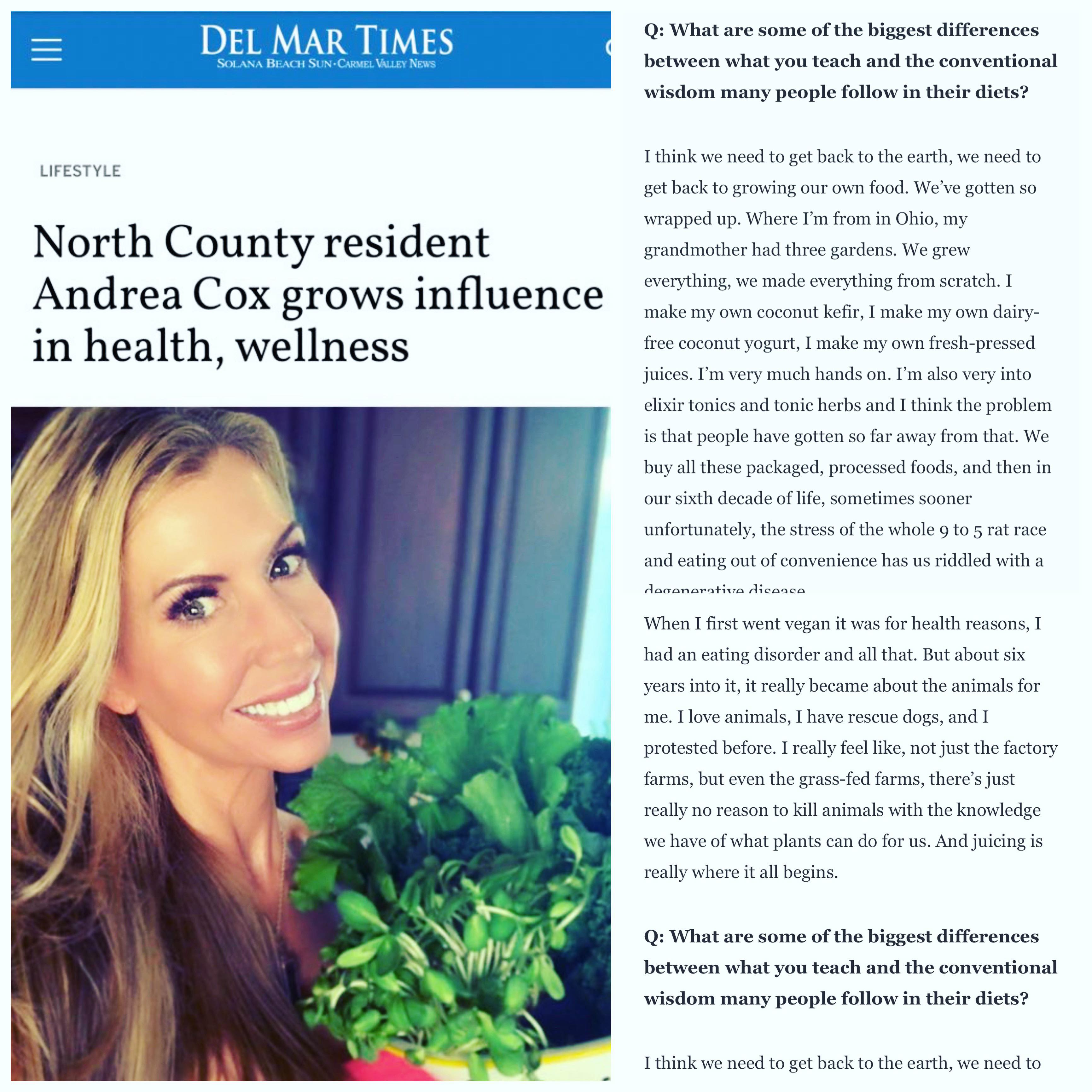 Here is the link that the San Diego Tribune and The Del Mar Times wrote about me today.